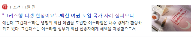 이미 이스라엘에서 [그린패스]라는 백신 여권을 도입하고 있는데요, 이로 인해 해외여행이 활발해진 것은 아니지만 내수 경기 활성화 부분에서는 상당한 효과를 거두고 있다고 합니다.