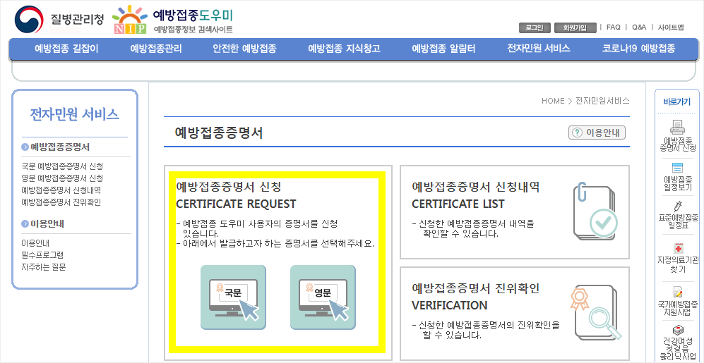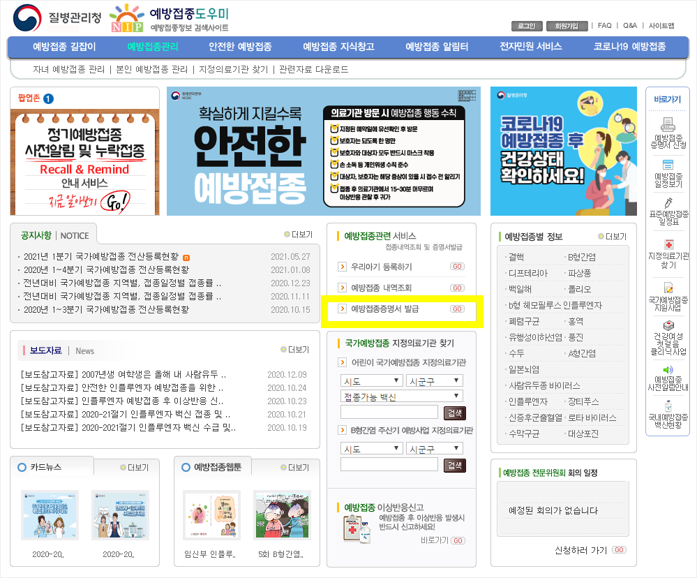 2. 질병관리청 예방접종도우미 사이트(http://nip.kdca.go.kr)에서 발급